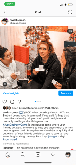I partnered with Target to promote their game, “Just One”. This collaboration took place over the Christmas holiday, and was a success with over 11% engagement rate.